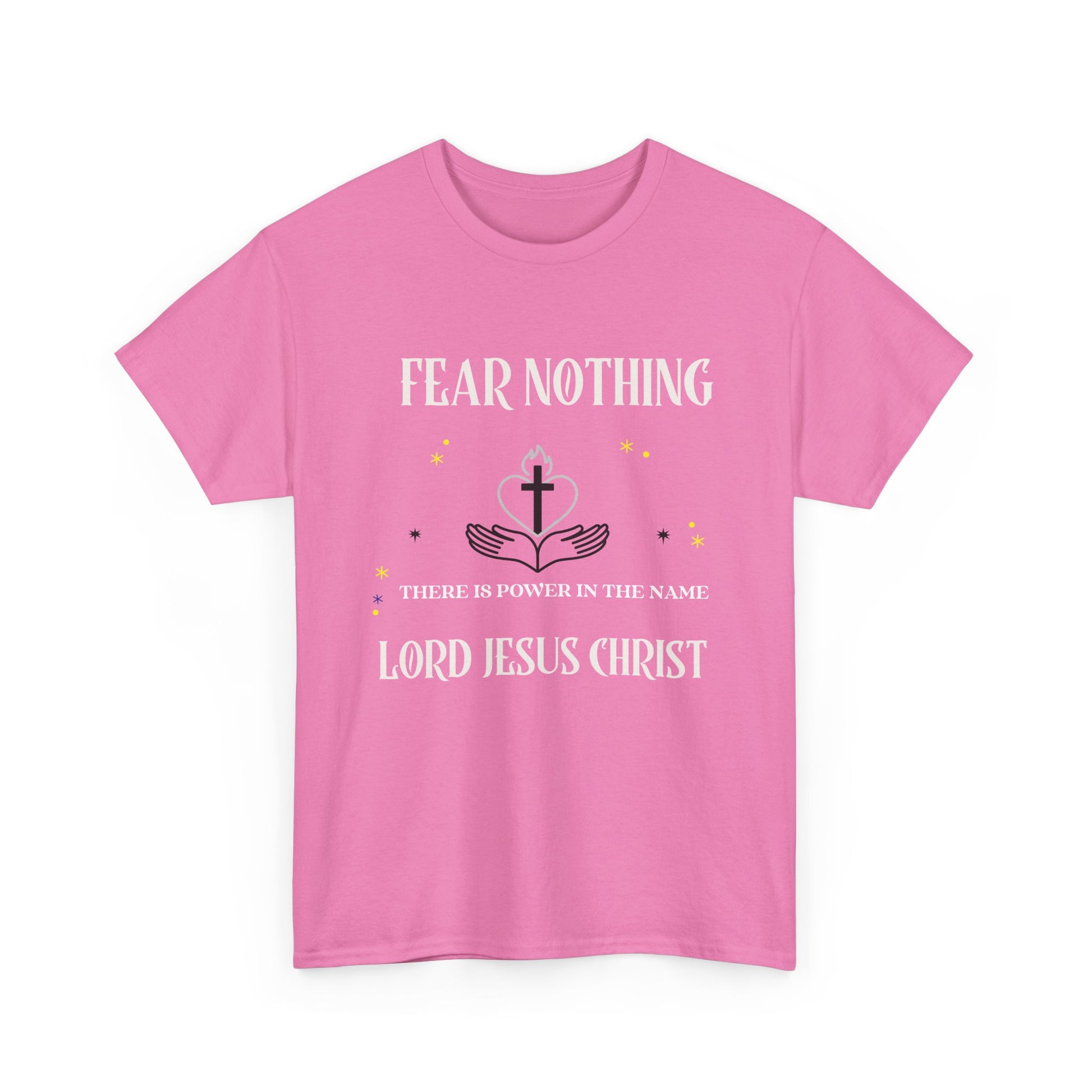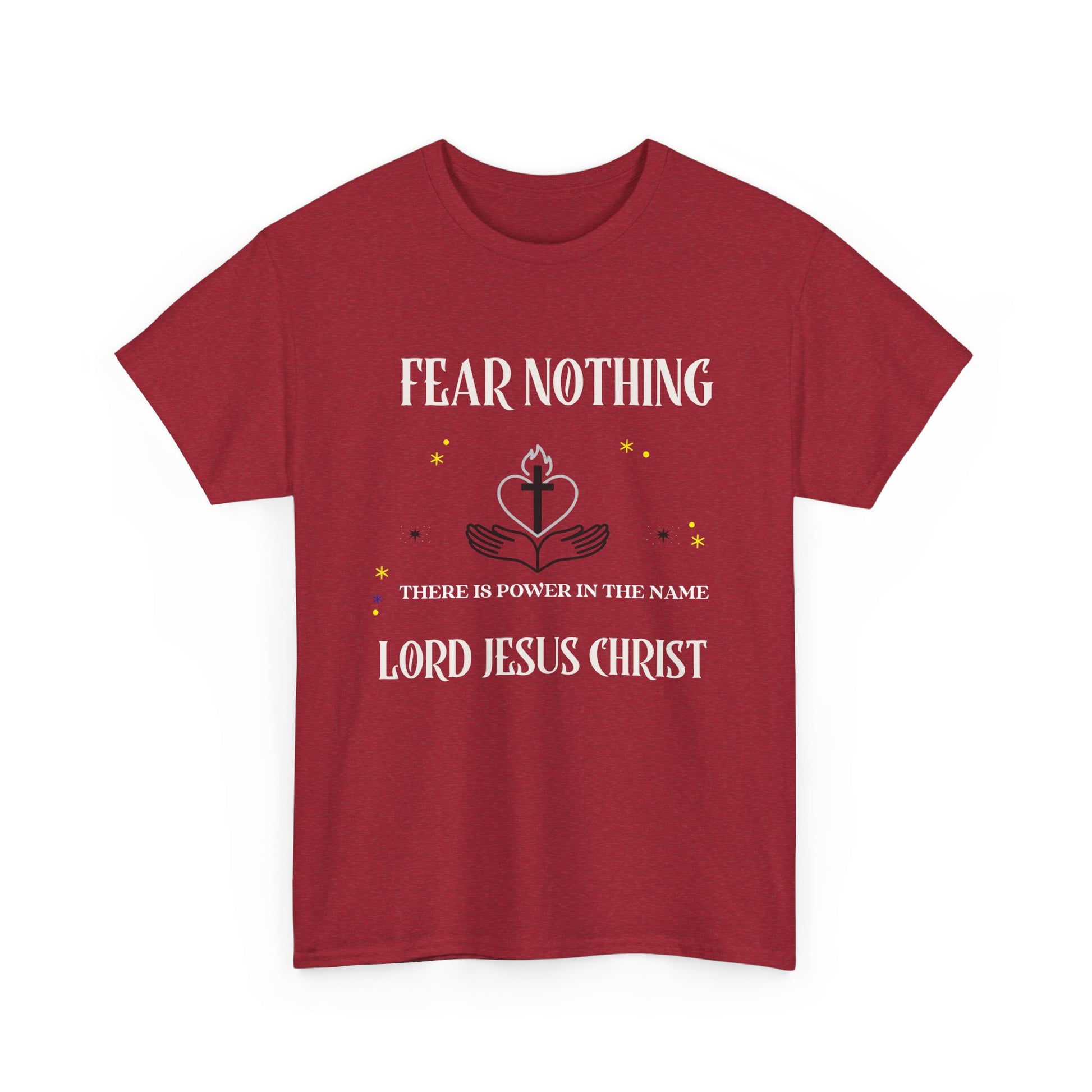 This T-Shirt is a powerful reminder of faith with the quote 'Fear Nothing there is power in the name of JESUS CHRIST'. It exudes a sense of strength, hope, and confidence, making it perfect for those seeking inspiration in their daily lives. Ideal for Christians and believers, this T-Shirt is suitable for religious holidays, church events, or as a thoughtful gift for loved ones.