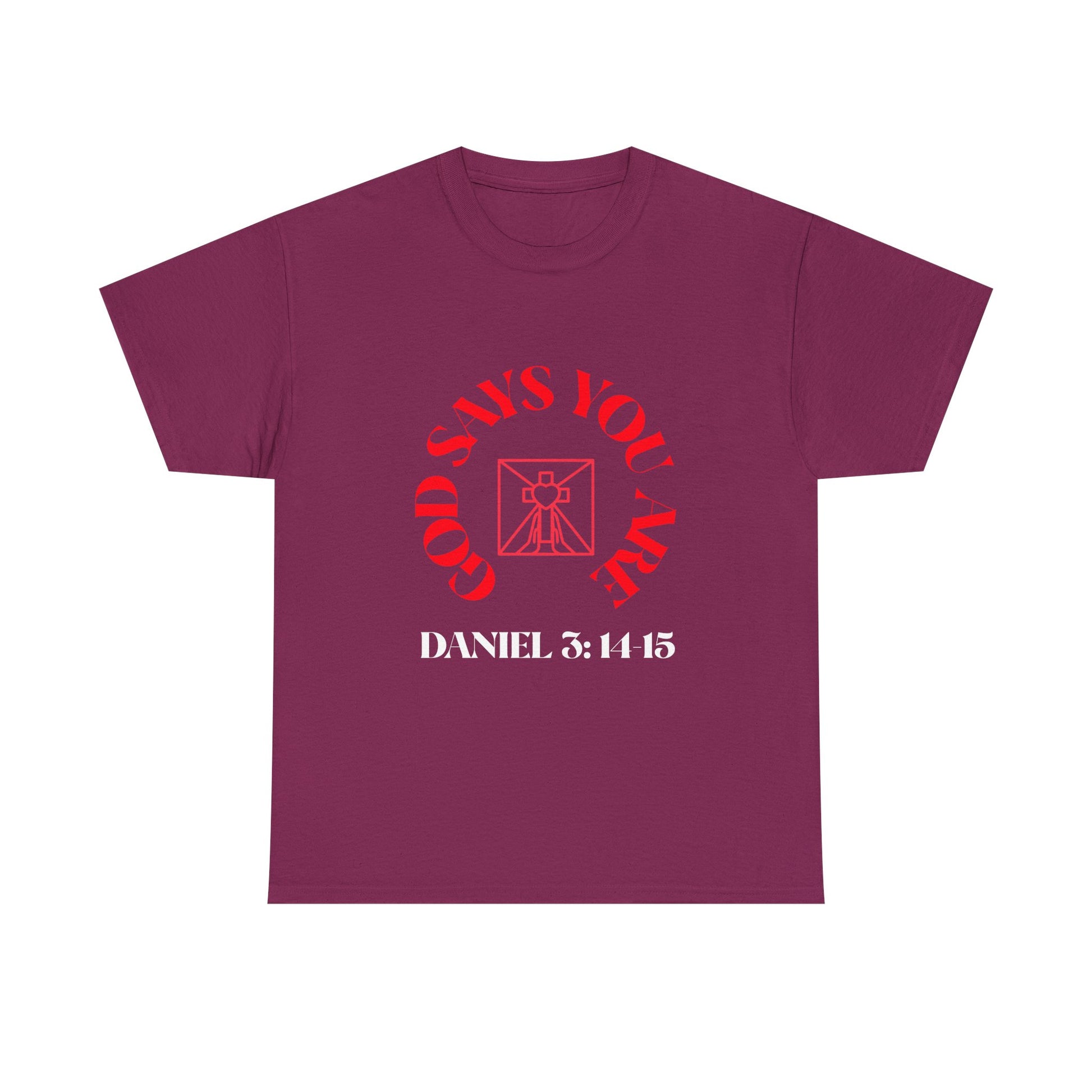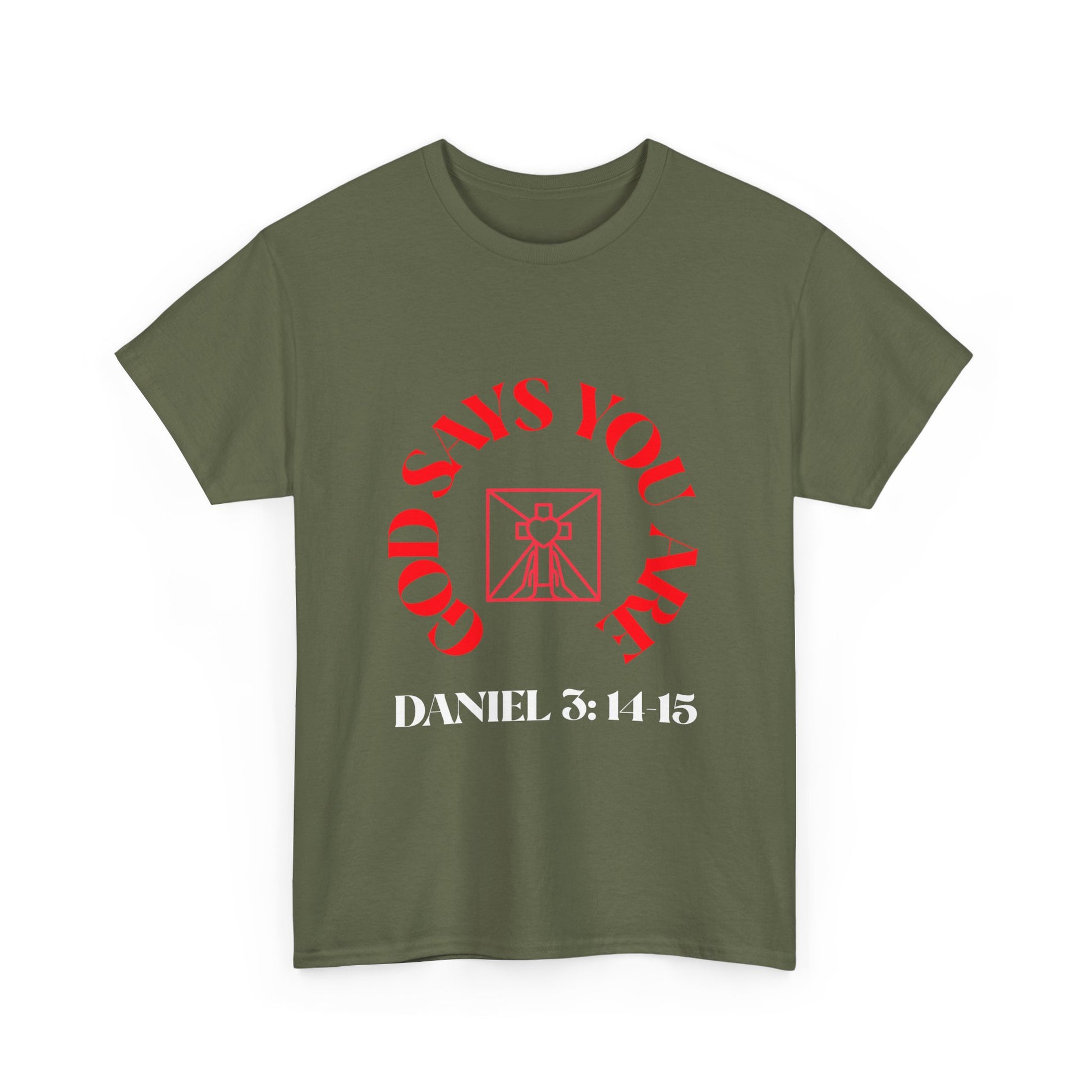 GOD SAYS YOU ARE - A comfortable and durable unisex T-shirt featuring an inspirational Bible verse design. Perfect for casual wear or spreading positivity through your outfit. Ideal for adults looking to express their faith and spirituality. Great for religious holidays, church events, or everyday wear.
