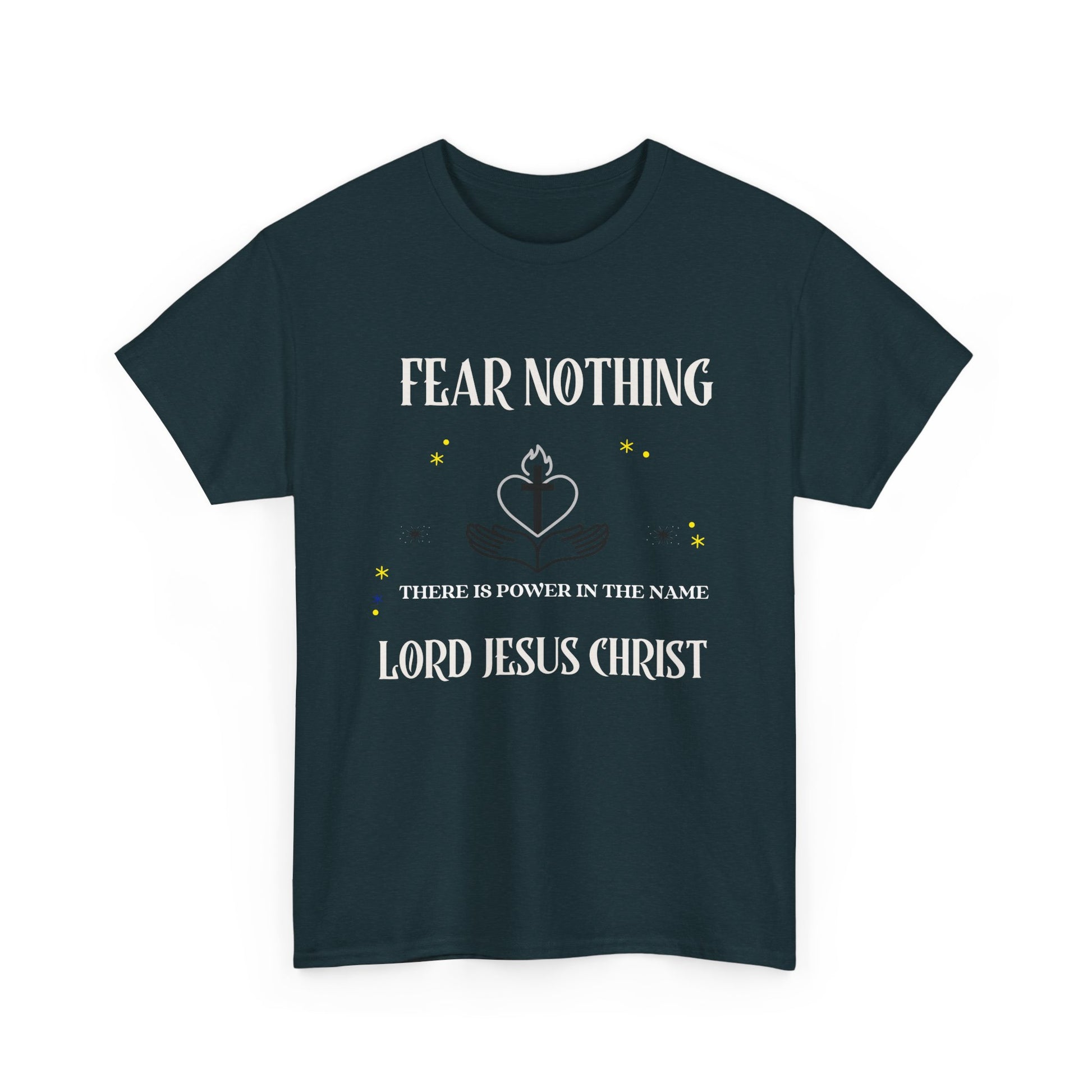 This T-Shirt is a powerful reminder of faith with the quote 'Fear Nothing there is power in the name of JESUS CHRIST'. It exudes a sense of strength, hope, and confidence, making it perfect for those seeking inspiration in their daily lives. Ideal for Christians and believers, this T-Shirt is suitable for religious holidays, church events, or as a thoughtful gift for loved ones.